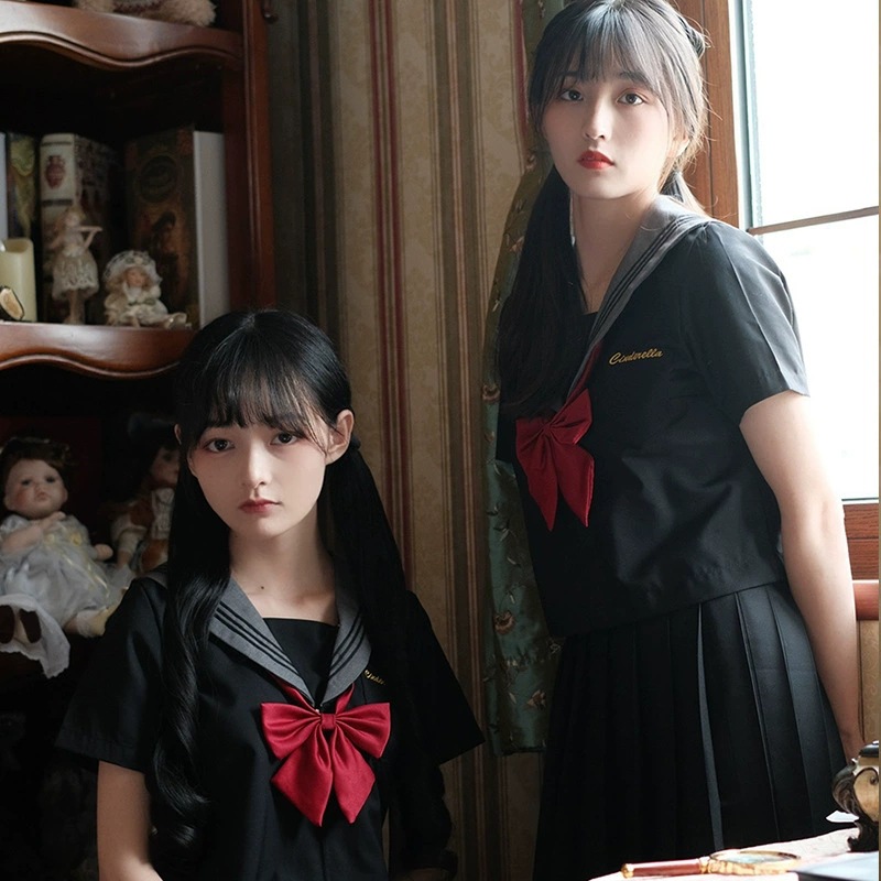 Cinderella Musim Semi ortodoks JK seragam pelaut hitam seragam sekolah Jepang seragam kelas gaya kuliah seragam menengah