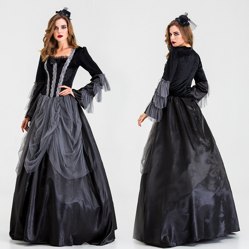 Halloween Putri abad pertengahan renda hitam jahitan bel besar Lengan gaun court retro Queen pakaian penampilan