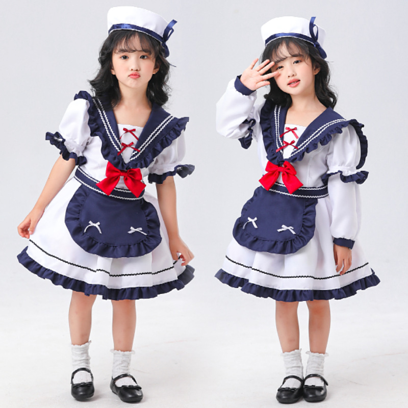 Pakaian seragam anak perempuan, pakaian pertunjukan panggung anak-anak, Gaun pelaut, Cosplay anime, seragam Lolita JK, gaya Navy baru