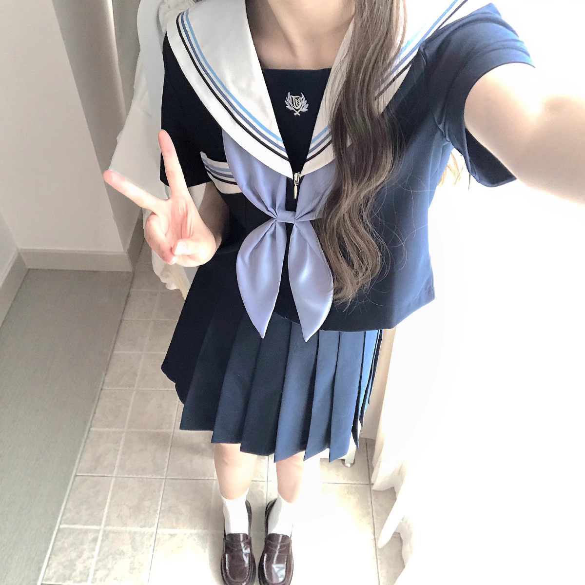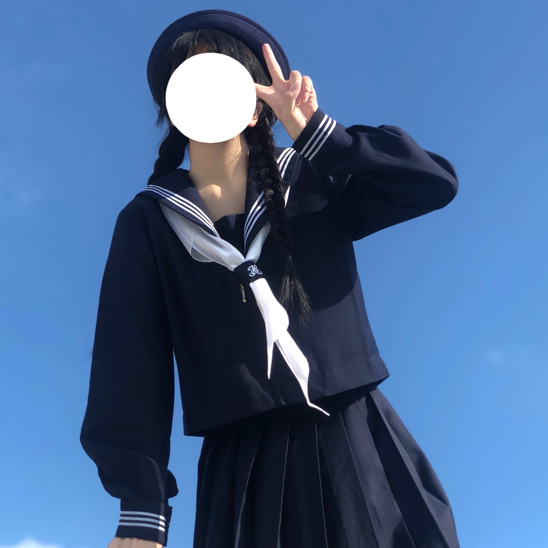 Setelan seragam pelaut cyanosis biru dongker tiga Jepang JK klasik dasar (grosir)