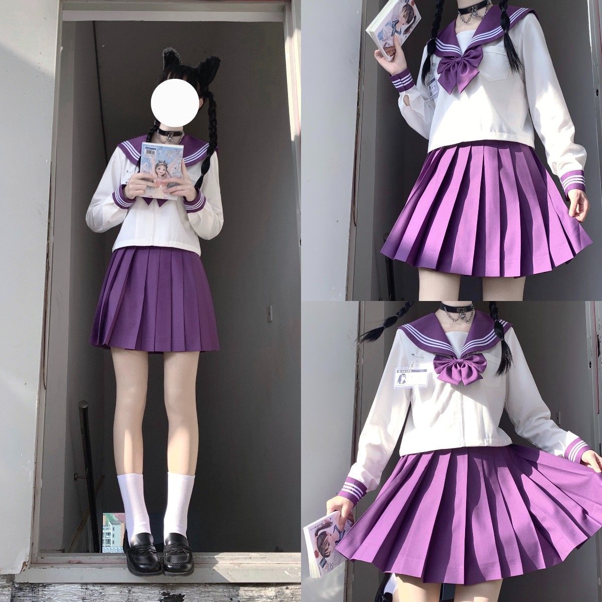 Setelan pelaut tiga potong ungu dasar grosir seragam jk set penuh asli pakaian gaya kuliah setelan musim panas