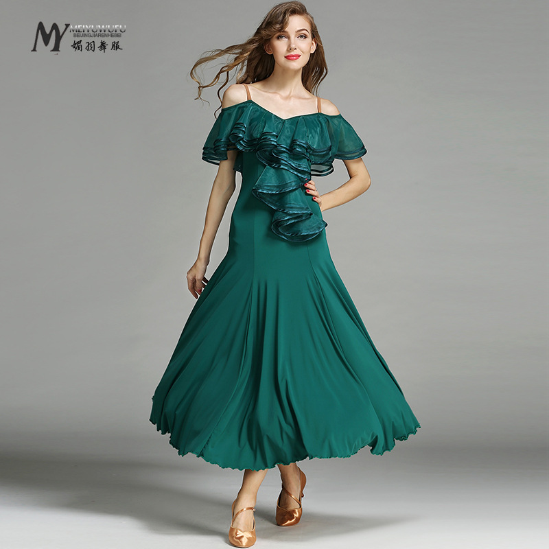 Meiyu Rok dansa Modern, kostum pertunjukan daun lotus besar mewah, kostum dansa standar nasional MY758, Rok dansa Modern klasik Prancis