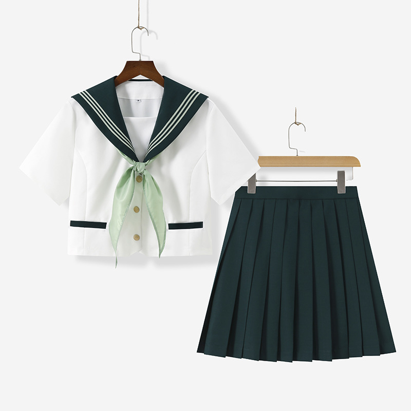 Pasokan pabrik baru pakaian pelaut tiga Hijau JK seragam lengan panjang musim semi dan musim gugur gaya preppy rok berlipat setelan