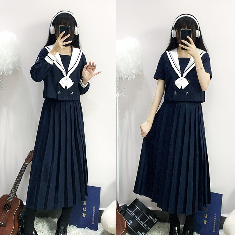 Seragam sekolah gaya Jepang, seragam sekolah jk, paus biru tua, setelan seragam kelas, gaya kuliah, pakaian pelaut jk, lembut, gaya Jepang, murid perempuan