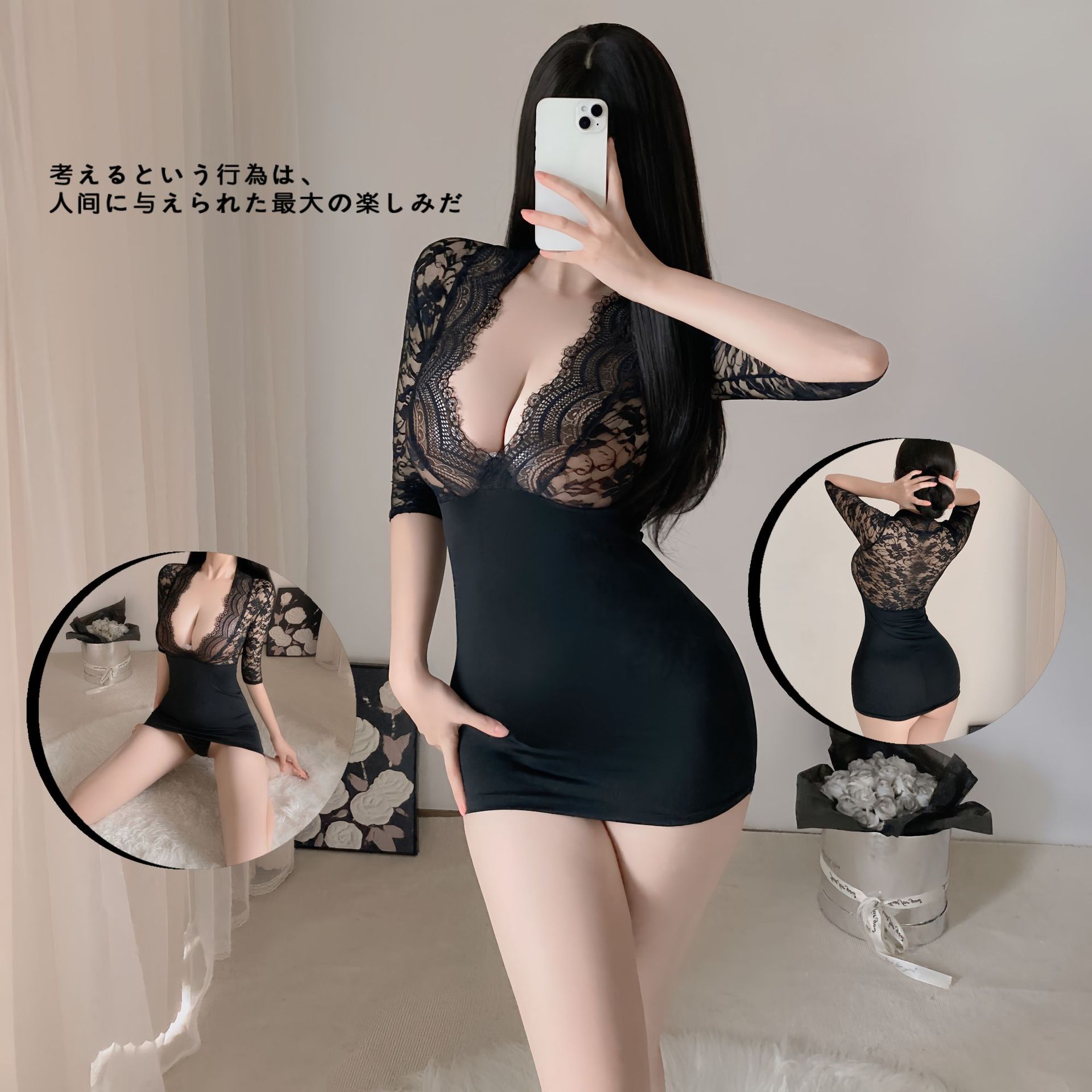 Lingerie seksi, klub malam seksi ukuran plus lengan panjang berongga setelan perspektif selubung renda ramping seragam satu potong 6530