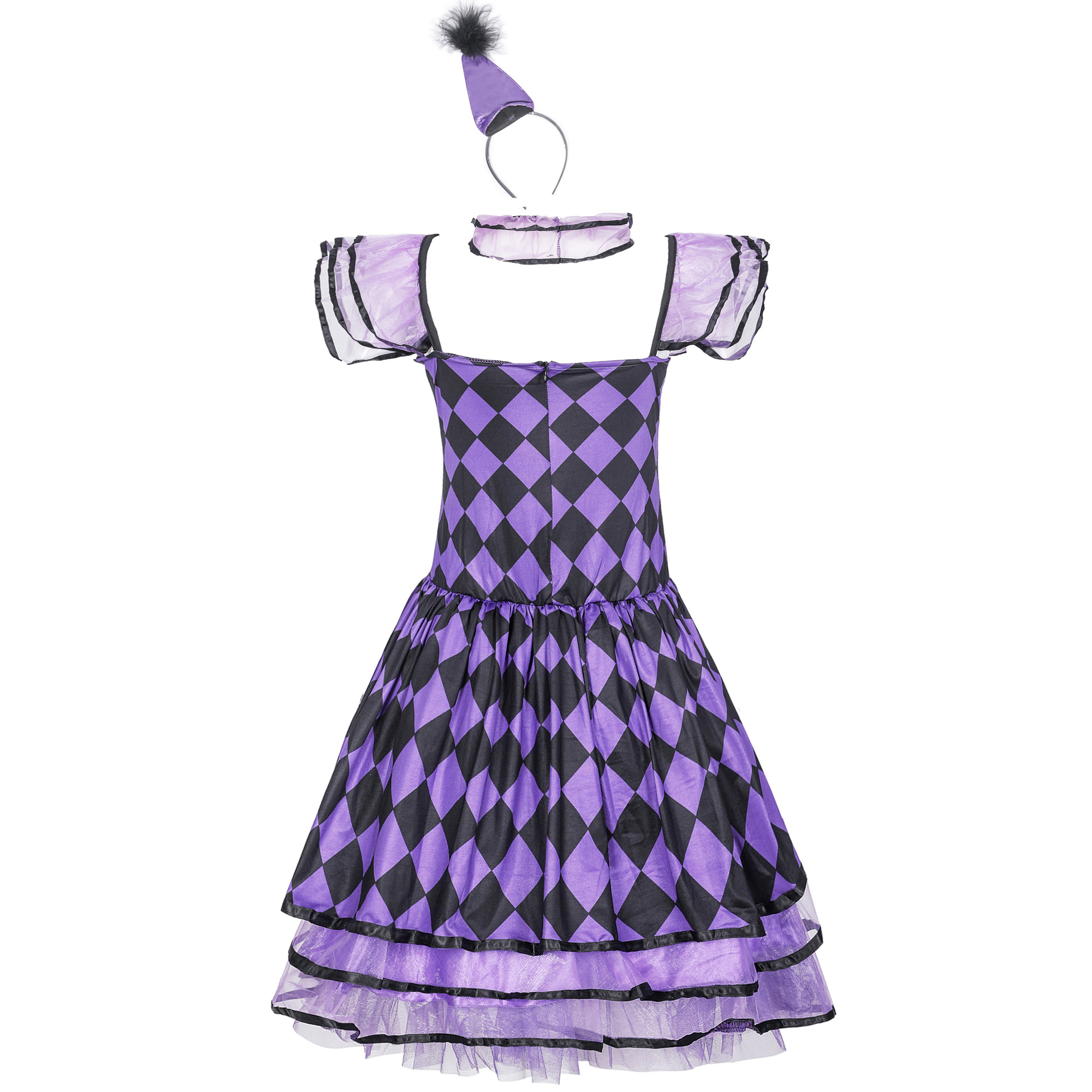 Setelan kostum Halloween, seragam badut penyedot darah, Gaun kotak-kotak ungu, seragam badut beragam, kostum Halloween