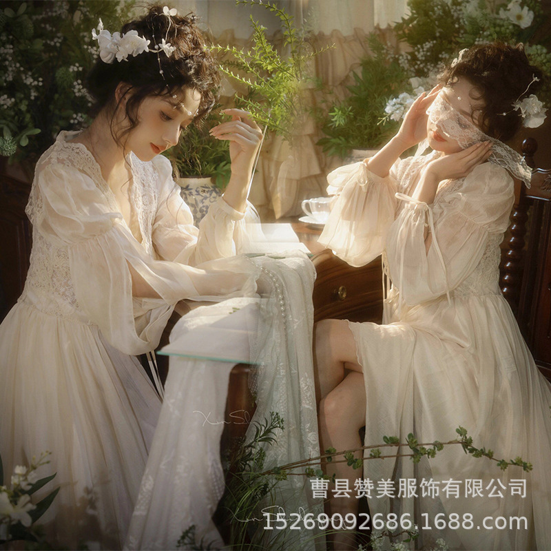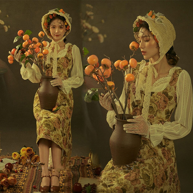 Gaun bunga tinta nostalgia Retro foto pakaian foto seni pribadi pakaian tema Studio gaya Mori istana