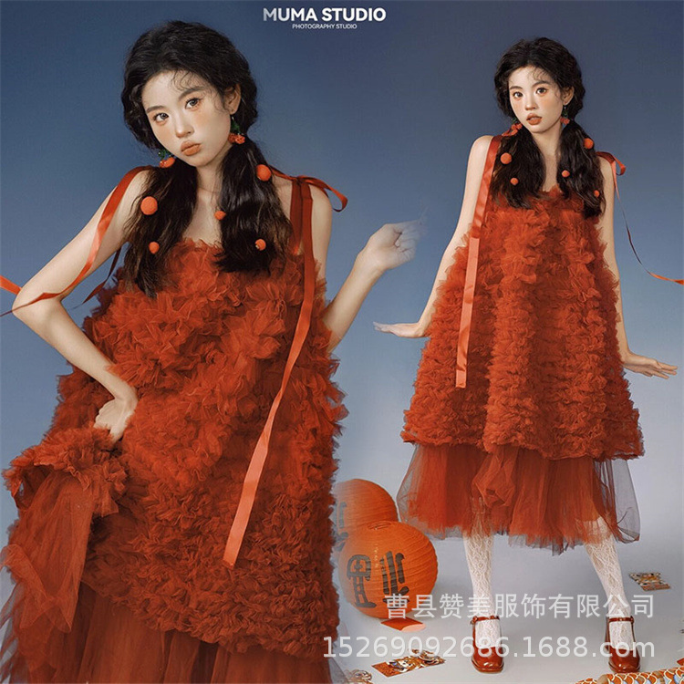 Gaun merah Foto Ulang Tahun Studio, pakaian fotografi foto seni pribadi anak perempuan manis Foto Ulang Tahun Baru