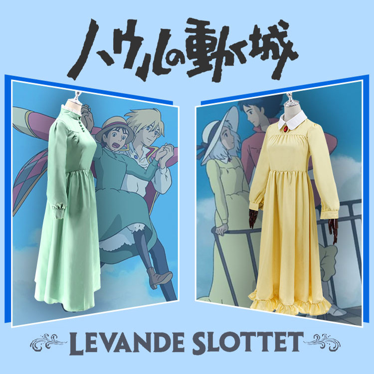 Hal's mobile Castle cos setelan gaun kuning hijau cosplay anime Sophie kostum cosplay