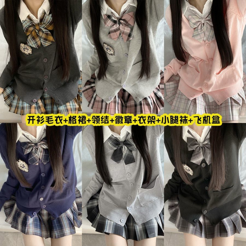 Kardigan Sweater Setelan JK Saus Beili Kardigan Asli Asli Rok Lipit Setengah Tubuh Setelan Musim Gugur dan Musim Dingin Gaya Kampus Wanita