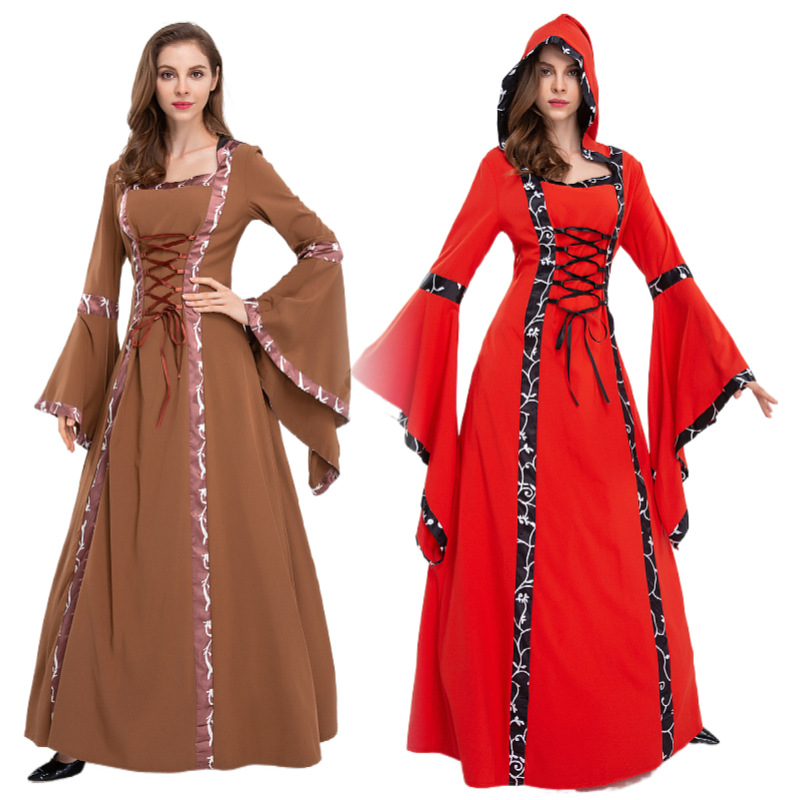 Pakaian cosplay wanita baru pakaian cos artistik retro Abad Pertengahan kostum performa permainan panggung mantel bajak laut