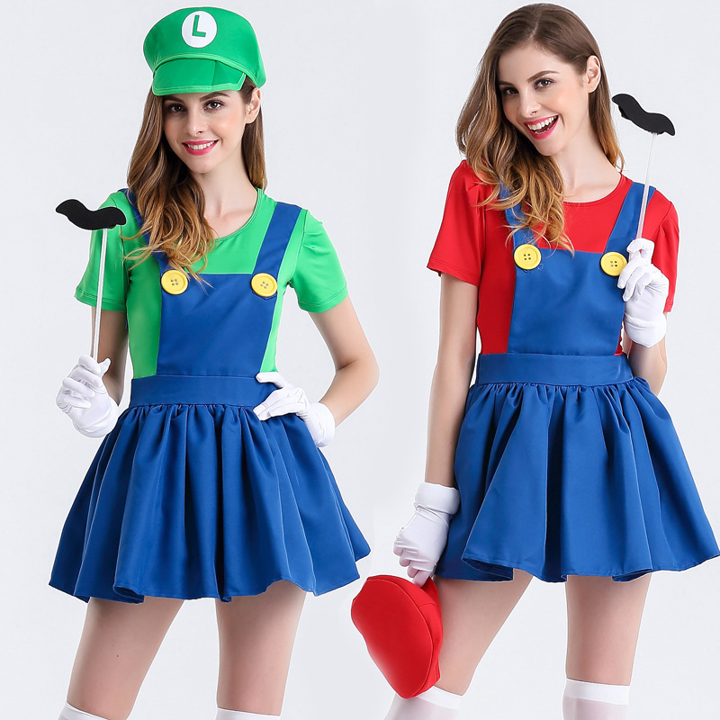 Kostum Super Mary setelan gaun lucu wanita pesta topeng kostum panggung permainan peran