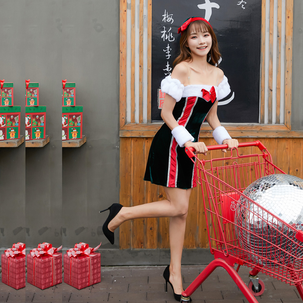 Gaun Natal baru Jepang gaun bungkus dada pelangi wanita Selamat Datang gaun Natal setelan seksi