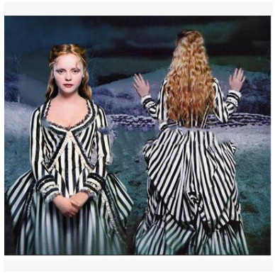 Gaun Eropa dan Amerika Inggris Victoria gaun garis hitam dan putih Gotik pakaian cosplay