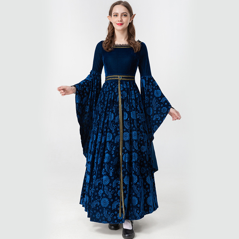 Kostum Halloween Eropa dan Amerika, kostum Gotik vampir penyihir retro kostum panggung kostum pengadilan