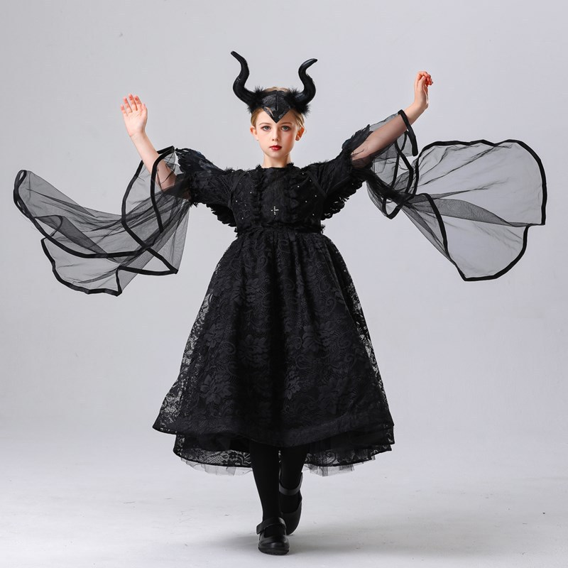 Halloween Anak Perempuan Vampire Tidur Kutukan Cos Gaun Anak-Anak Hitam Setan Penyihir Elf Pertunjukan