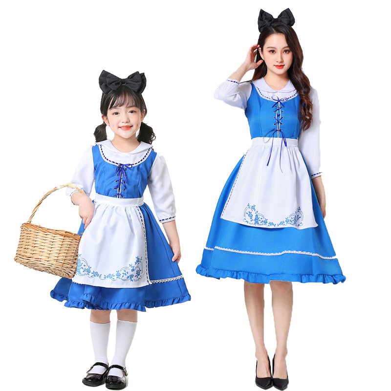 Halloween Alice in Wonderland COS pakaian dewasa anak-anak biru dan putih rok pelayan pastoral bermain pakaian