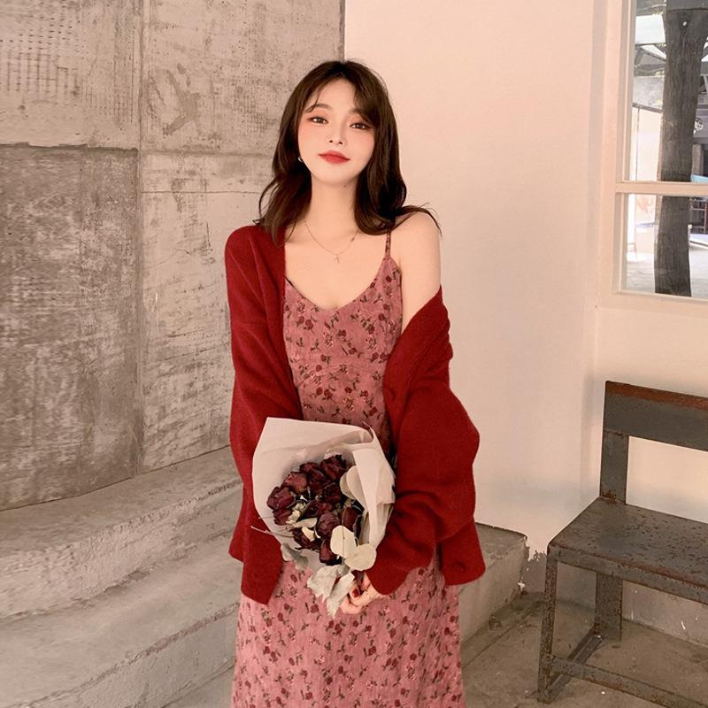Setelan rok wanita renda rajut, setelan dua potong gaya dewi modis, baju selempang elegan, mantel rajut baru 2020