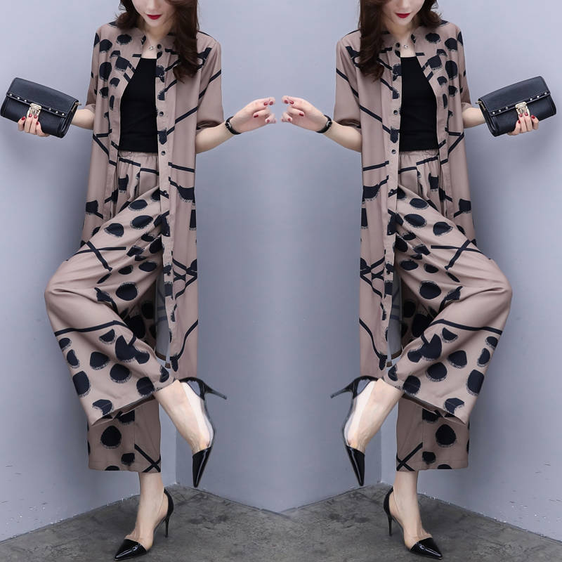 Setelan kardigan gaya Korea wanita, atasan kardigan ukuran besar, celana kaki lebar, set dua potong 2021 musim gugur