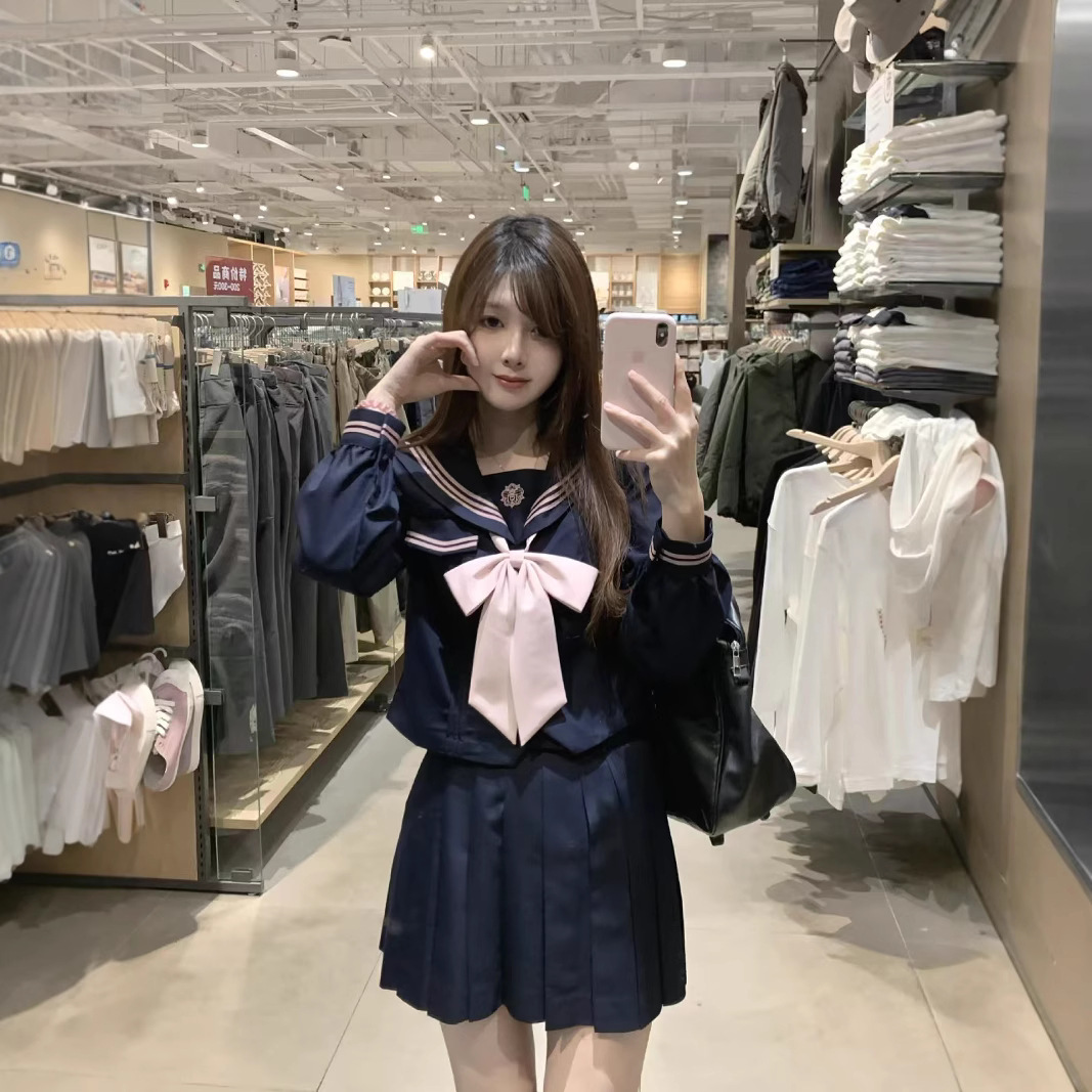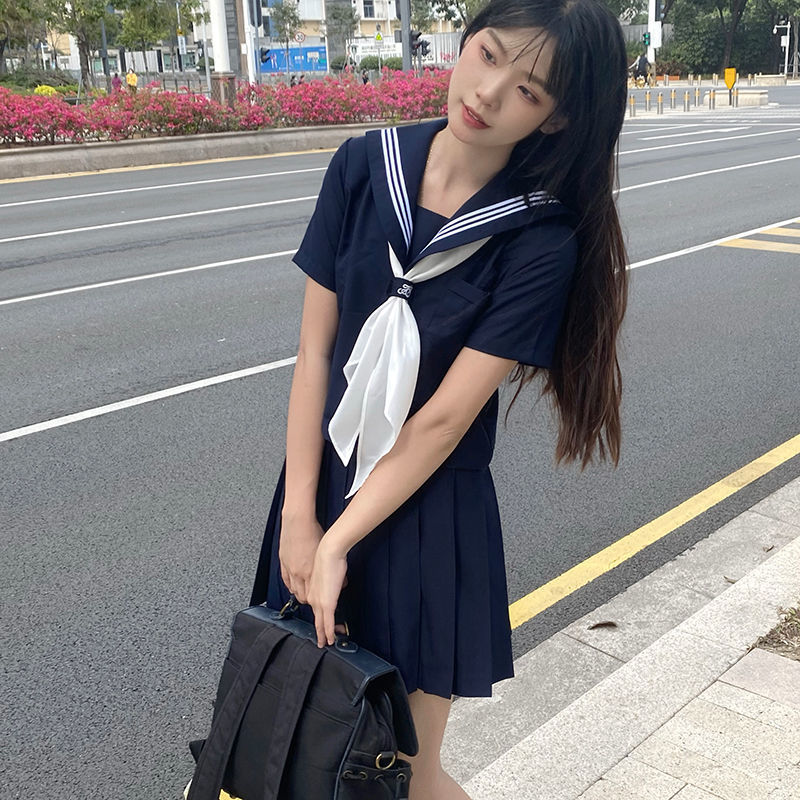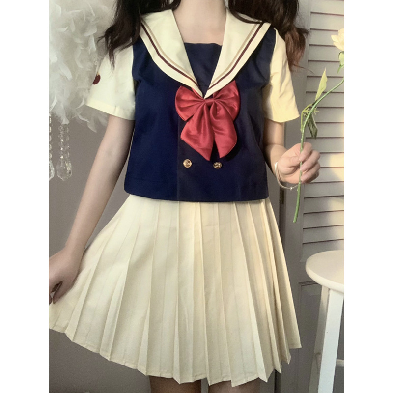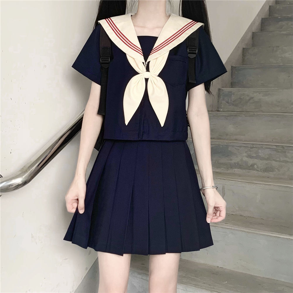 Setelan pelaut Jepang seragam siswa perempuan seragam kelas JK Guan Xi placket tiga rok lipit setelan gaya kuliah