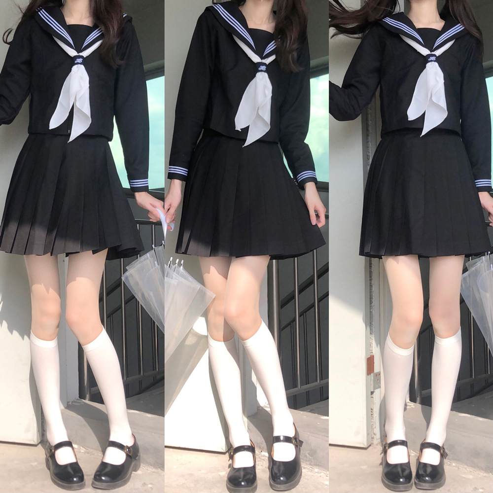 Produsen menyediakan seragam JK Jepang hitam tiga pakaian pelaut dasar seragam sekolah gaya kuliah musim semi dan musim gugur setelan wanita