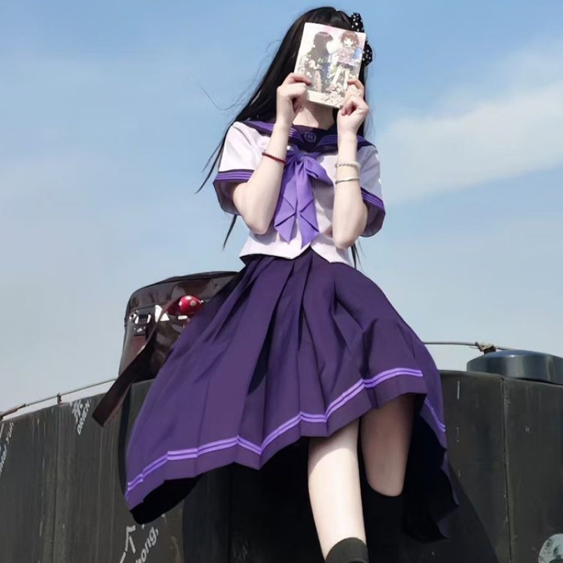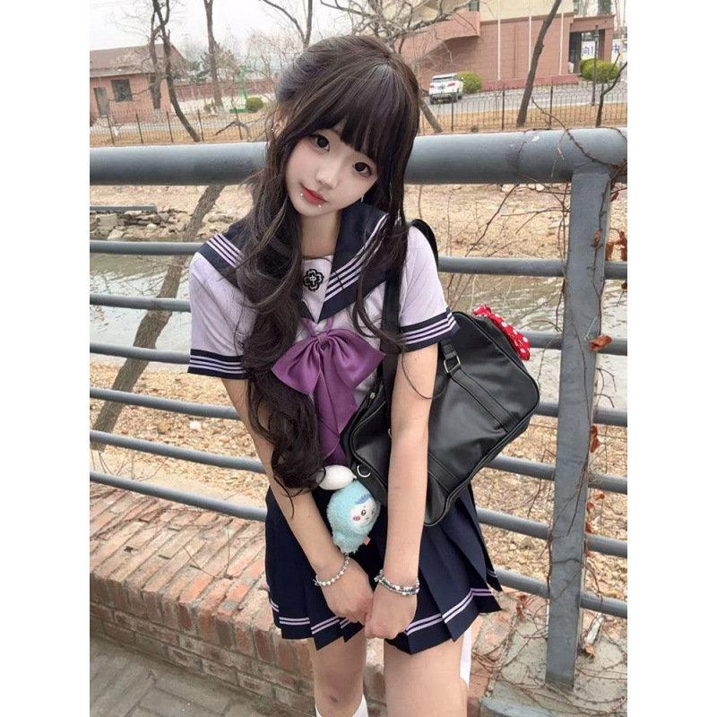 JK Seragam Pakaian Pelperairan Wanita Gaya Sekolah Jepang Slim Fit Ungu Set Lengan Pendek