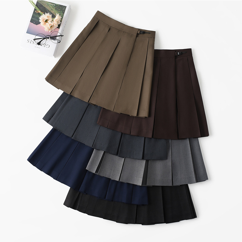 Rok lipit kotak jk multi warna rok wanita musim gugur dan musim dingin rok lipit warna solid dasar rok midi seragam