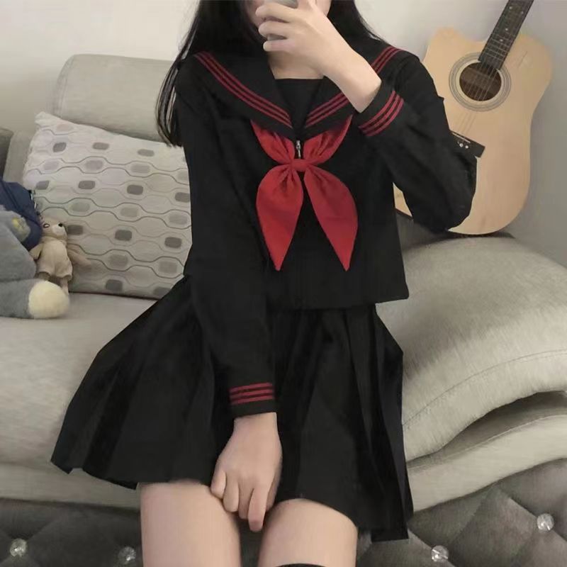 Grosir seragam jk Orthodox setelan rok merah buruk tiga siswa hitam lengan panjang dasar pakaian menengah pelaut