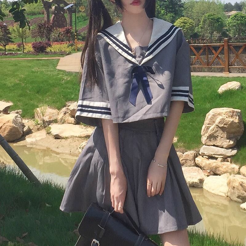Setelan seragam sekolah Jepang dan Korea, pakaian pelaut wanita, seragam JK, seragam pelajar, pakaian sekolah Jepang dan Korea, stok tersedia