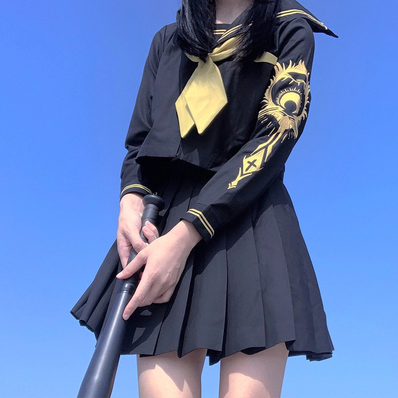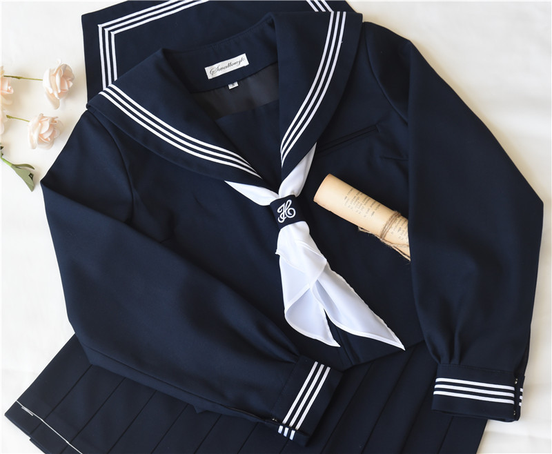 Seragam sekolah tiga cyanosis dasar JK pelaut Jepang setelan gaya Universitas gaun panjang buruk seragam sekolah pelajar seragam kelas