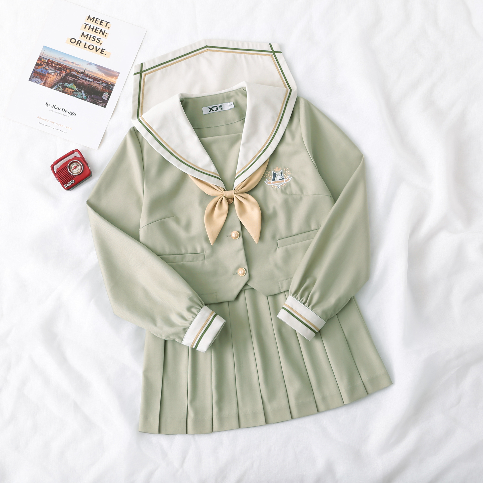 Xiaojin setelan rok seragam Jepang, tirai kolam Orthodox asli jk, rok seragam Jepang hijau mint manis