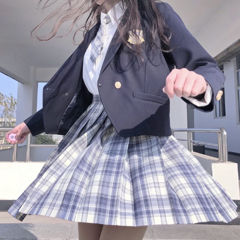 Setelan seragam sekolah gaya preppy Inggris setelan kemeja siswa sekolah menengah pertama rok berlipat seragam kelas reduksi gaun chorus rok panjang