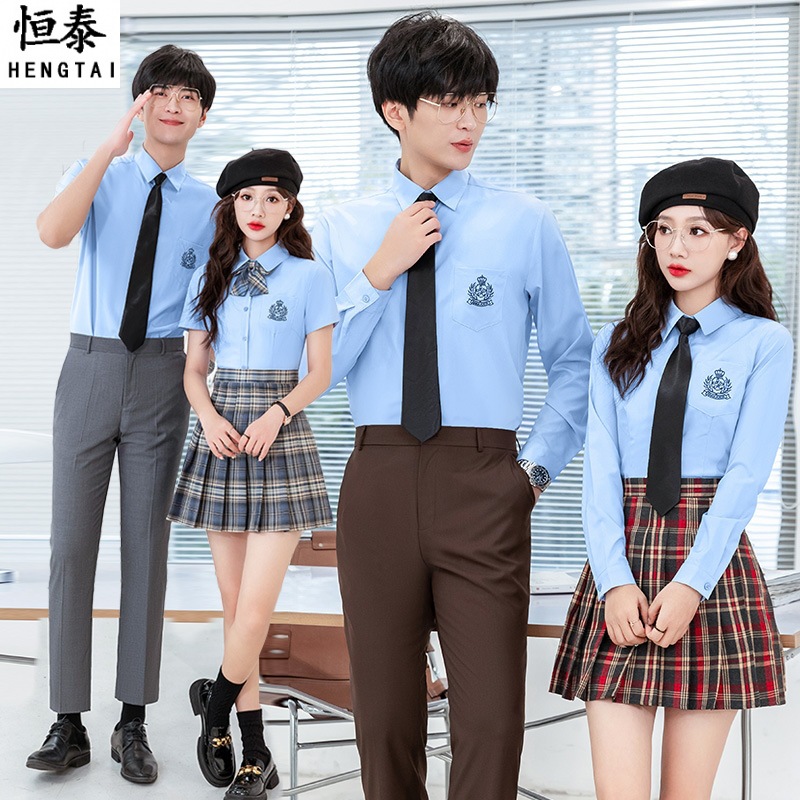 Kemeja biru pria dan wanita musim semi dan musim gugur elegan modis gaya Barat kemeja jk gaya kuliah pakaian kerja guru Taman kanak-kanak