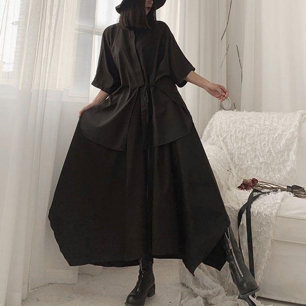 Desain Niche kemeja renda setengah lengan musim semi dan musim panas siswa baru longgar wanita gelap kemeja hitam pendek ins