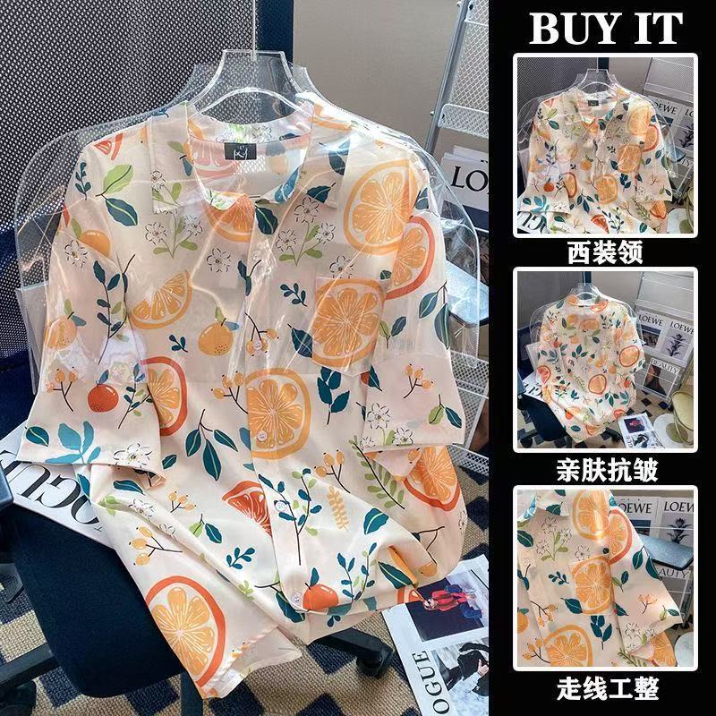 Kemeja Cetak Manis Musim Panas Kemeja Model Tipis Musim Panas Pakaian Luar Wanita Kemeja Lengan Pendek Longgar Gaya Amerika Pelajar Atasan Wanita Gaya Barat