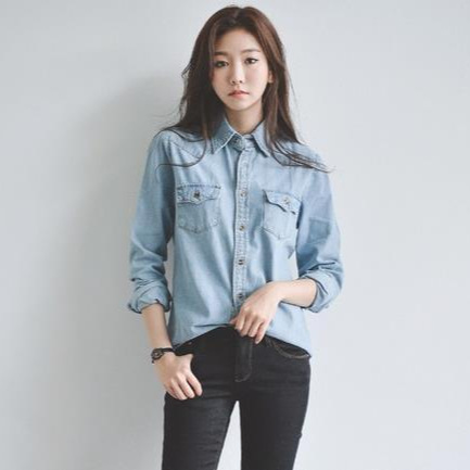 Kemeja Denim gaya Korea wanita, lengan panjang longgar gaya preppy serbaguna Musim Semi dan musim gugur setengah panjang untuk siswa 2024