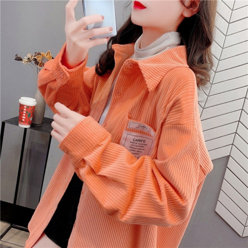Kemeja lengan panjang wanita korduroi langsung dari pabrik mantel pelajar fashion kasual longgar musim semi dan musim gugur untuk wanita