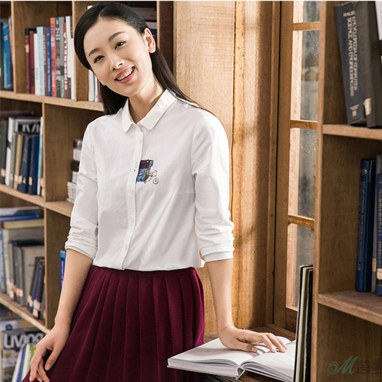 Kemeja lengan panjang wanita tidak beraturan 23 kerah kemeja Dalaman gaya Korea siswa kemeja longgar awal musim gugur 20 serbaguna baru