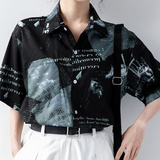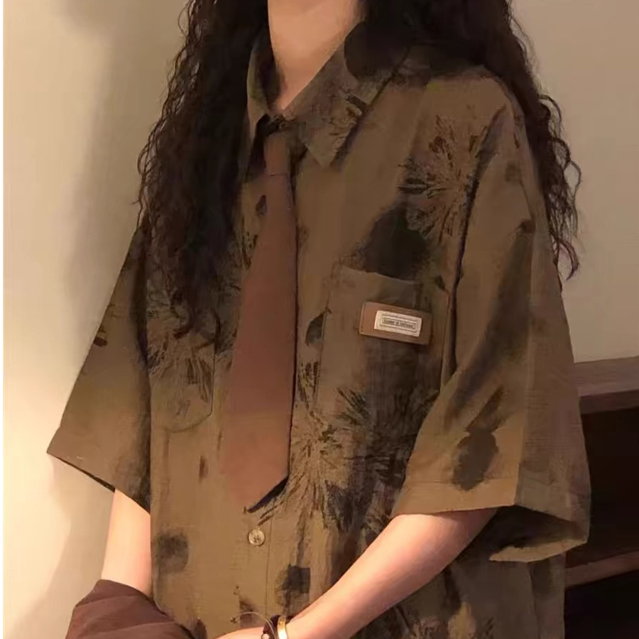 Kemeja Lengan Pendek Bercorak Gaya Santai Mudah Dipadu Padan Longgar Retro Gaya Amerika Model Baru Musim Panas Atasan Desain Trendi untuk Siswa Perempuan