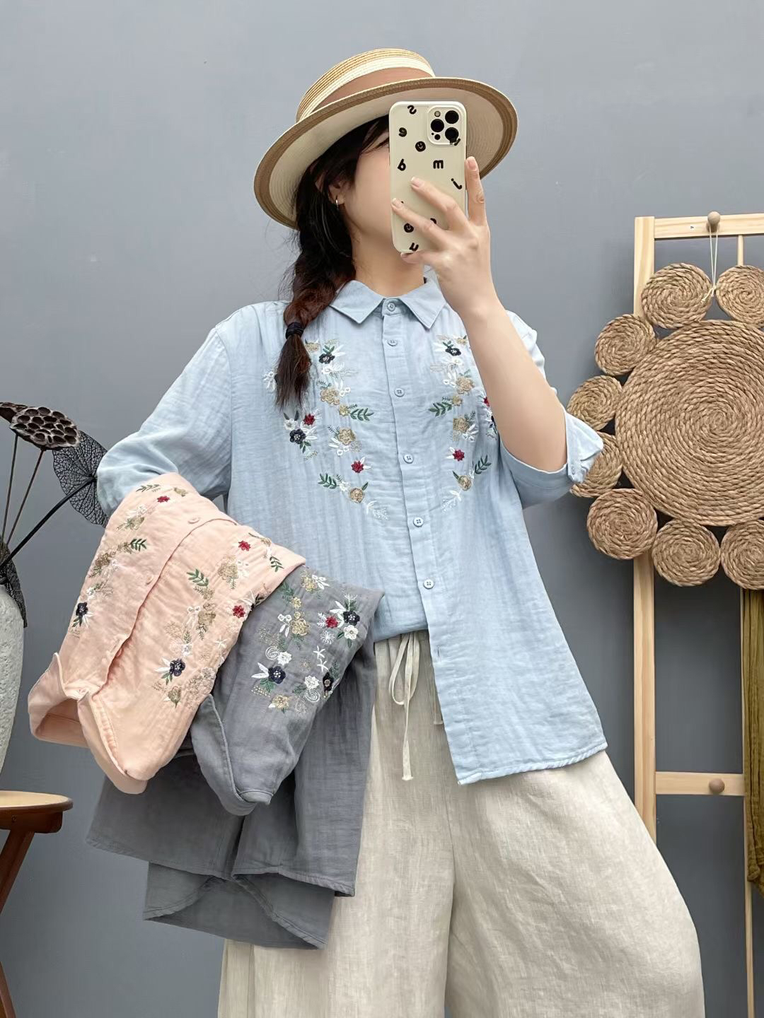 Kemeja Kasual Gaya Kampus Manis Model Baru Musim Panas 2025 Wanita Mudah Dipadu Padan Gaya Barat Lengan Pendek Benang Katun Siswa Sekolah Menengah Pertama