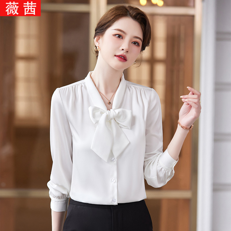 Kemeja wawancara pekerjaan mahasiswa musim gugur Guru pakaian formal kemeja lengan panjang sifon putih profesional untuk wanita