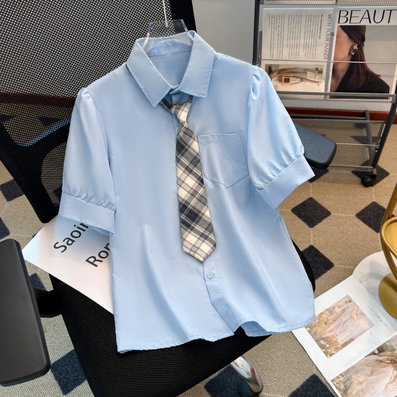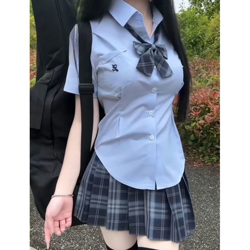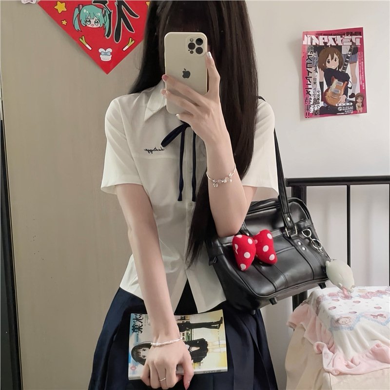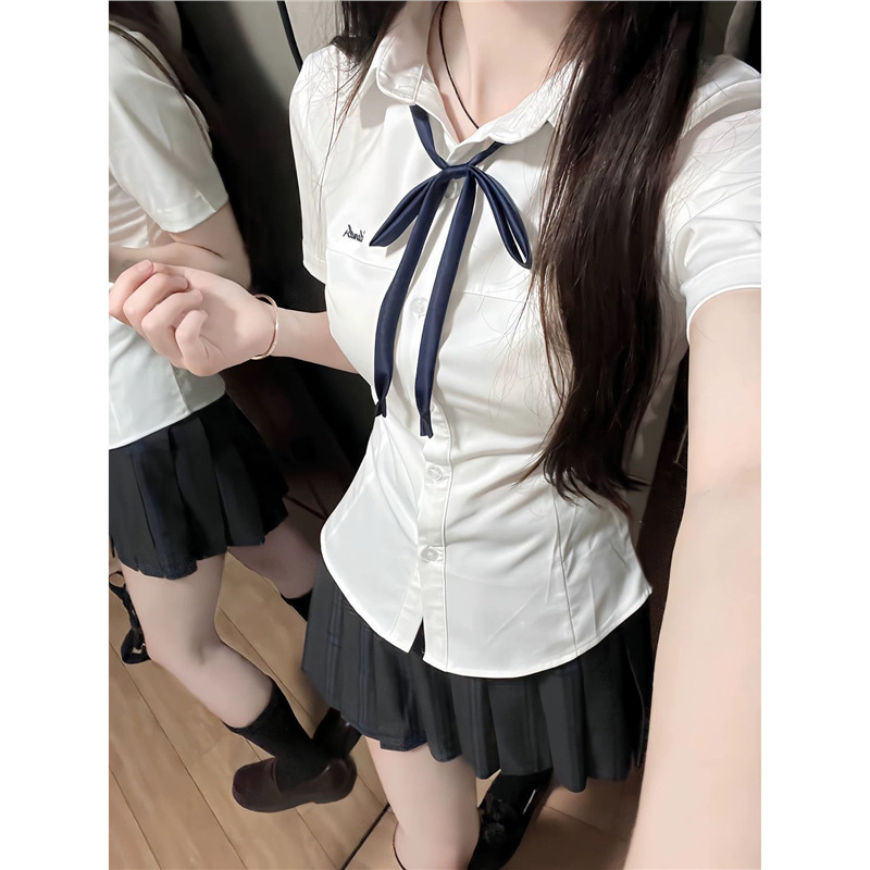 Kemeja Dasi JK Mudah Manis dan Garam Gadis Gaya Jepang Model Baru Musim Semi dan Musim Panas Kemeja Lengan Pendek Wanita Modis Mudah Dipadu Padan Trendi