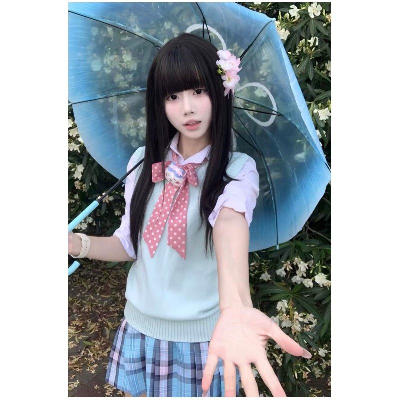 Rompi Warna Hijau Bordir Model Baru Gaya Sekolah Jepang Kemeja Model Dasar Delipat Rok Pendek Mudah Dipadu Padan Rok Seragam JK