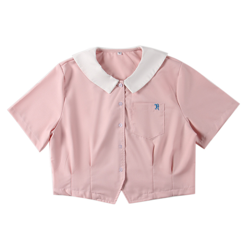 Seragam JK Jepang, kemeja kerah lancip lengan pendek tidak transparan seragam sekolah musim panas kemeja leher bulat bordir