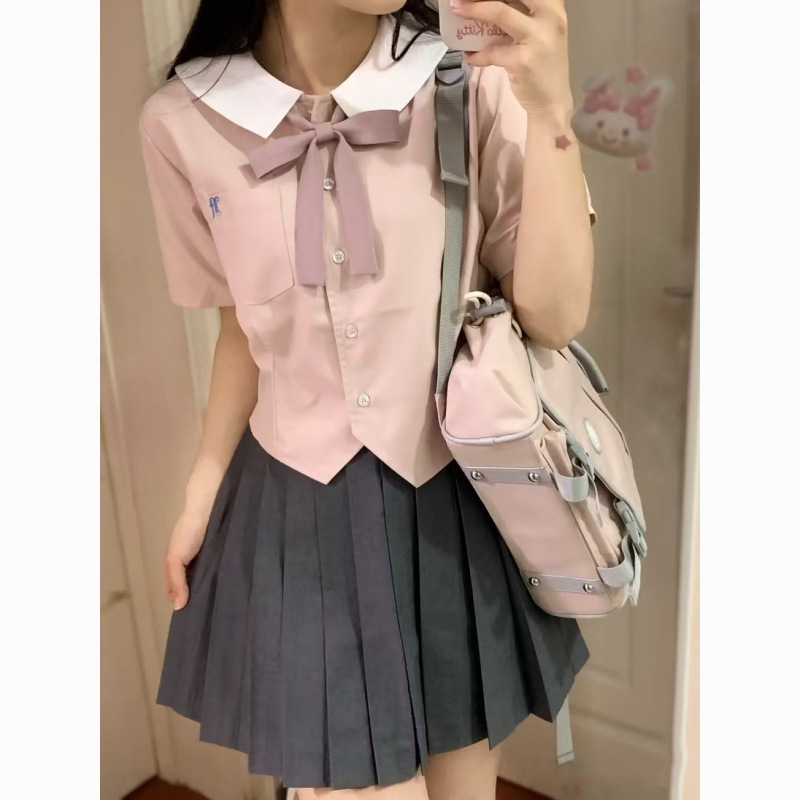 Baju Atasan Baru Musim Panas 2025 Seragam JK Model Pendek Wanita Kemeja Kecil Gaya Sekolah Manis Kerah Boneka Jepang