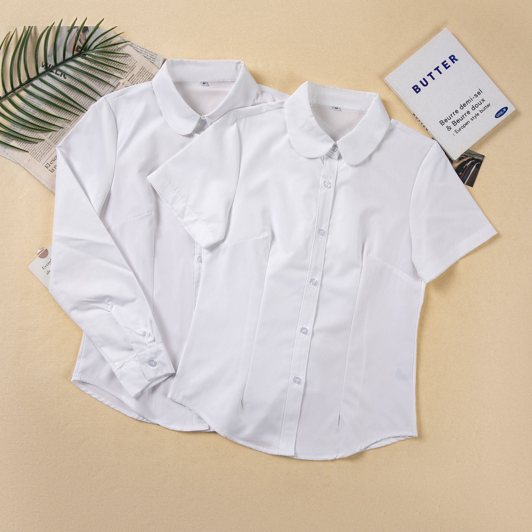 JK seragam gaya kampus Jepang, baju putih leher bulat lengan pendek, seragam sekolah kelas murid, setelan atasan ramping C2