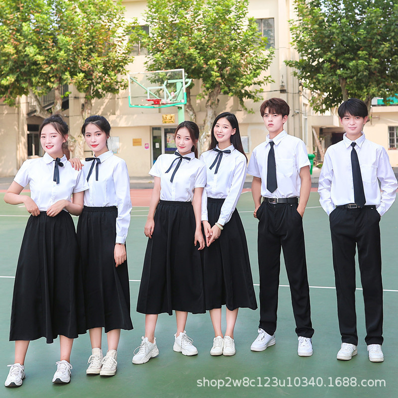 Seragam sekolah Thailand Perempuan, seragam sekolah gaya sama, kemeja lengan panjang, rok pendek JK, setelan seragam kelas wisuda