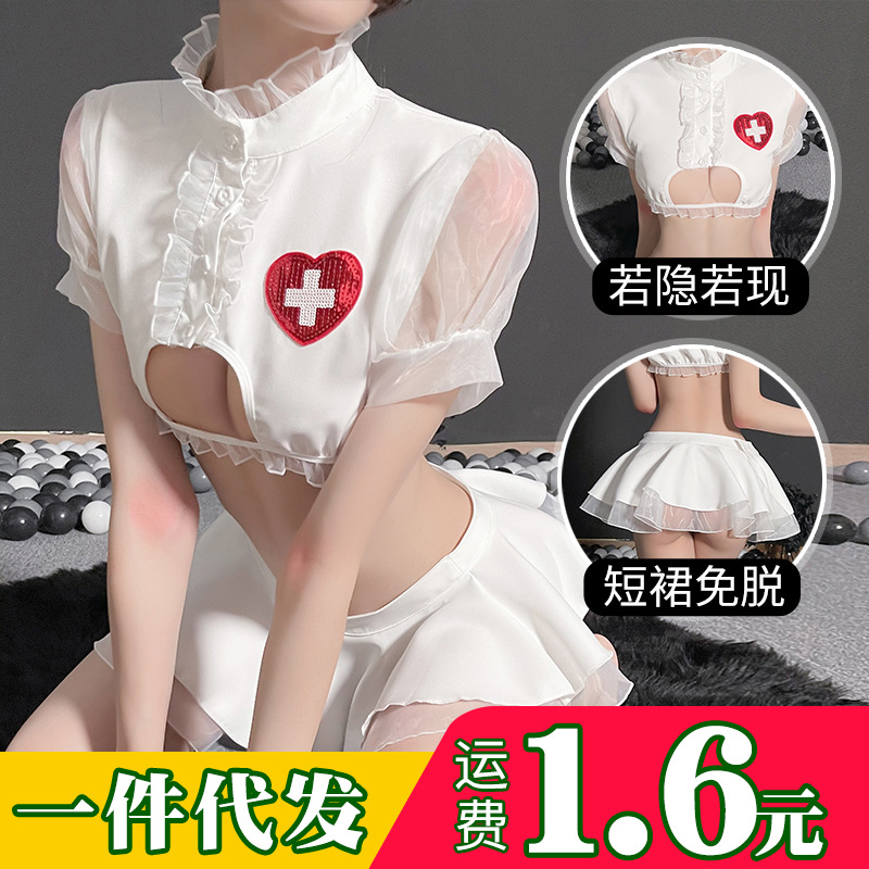 Lingerie seksi seksi wanita, seragam Suster kebocoran payudara, main peran pinggul, setelan menggoda, bebas dari gairah murni
