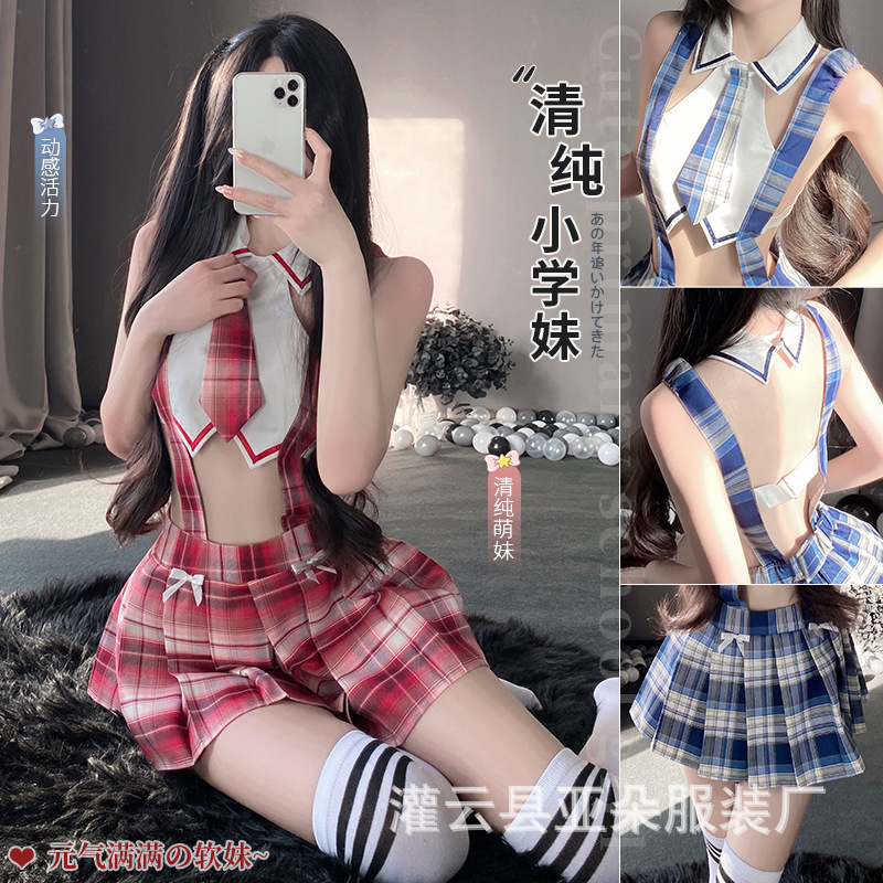 Lingerie seksi, pakaian siswa, seragam jk seksi, Rok lipit panas, setelan bermain peran