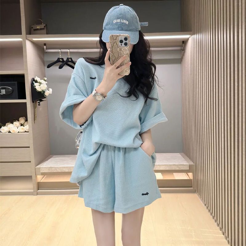 Waffinger Setelan Pakaian Olahraga Kaus Lengan Pendek Gaya BF Longgar Murid Musim Panas Wanita Celana Pendek Fashion Set Dua Potong Lari